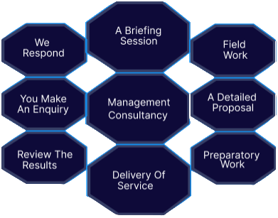 We work with you in the way that you prefer.For many of our clients this means delivering a single Strategic intervention programe and that is all. At the other end of the spectrum is a complex contract where we prepare, deliver, review and carry out most of the administration. Assignments go through the following stages. Not all strategies are appropriate to every project. Every client is in some way unique.